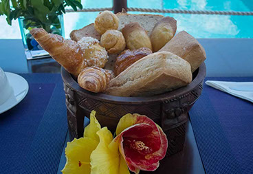 Parce que le petit déjeuner est le repas le plus important de la journée, l'hibiscus vous propose un large choix de viennoiseries fraîches et préparés sur place, des jus de fruits pour les vitamines, du café et bien d'autres mets pour être en pleines formes pour les activités de la journée!